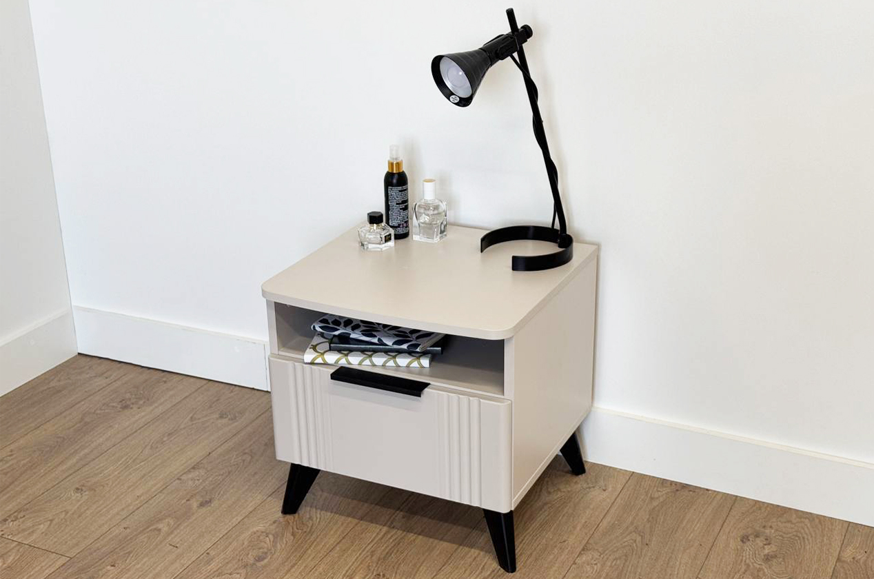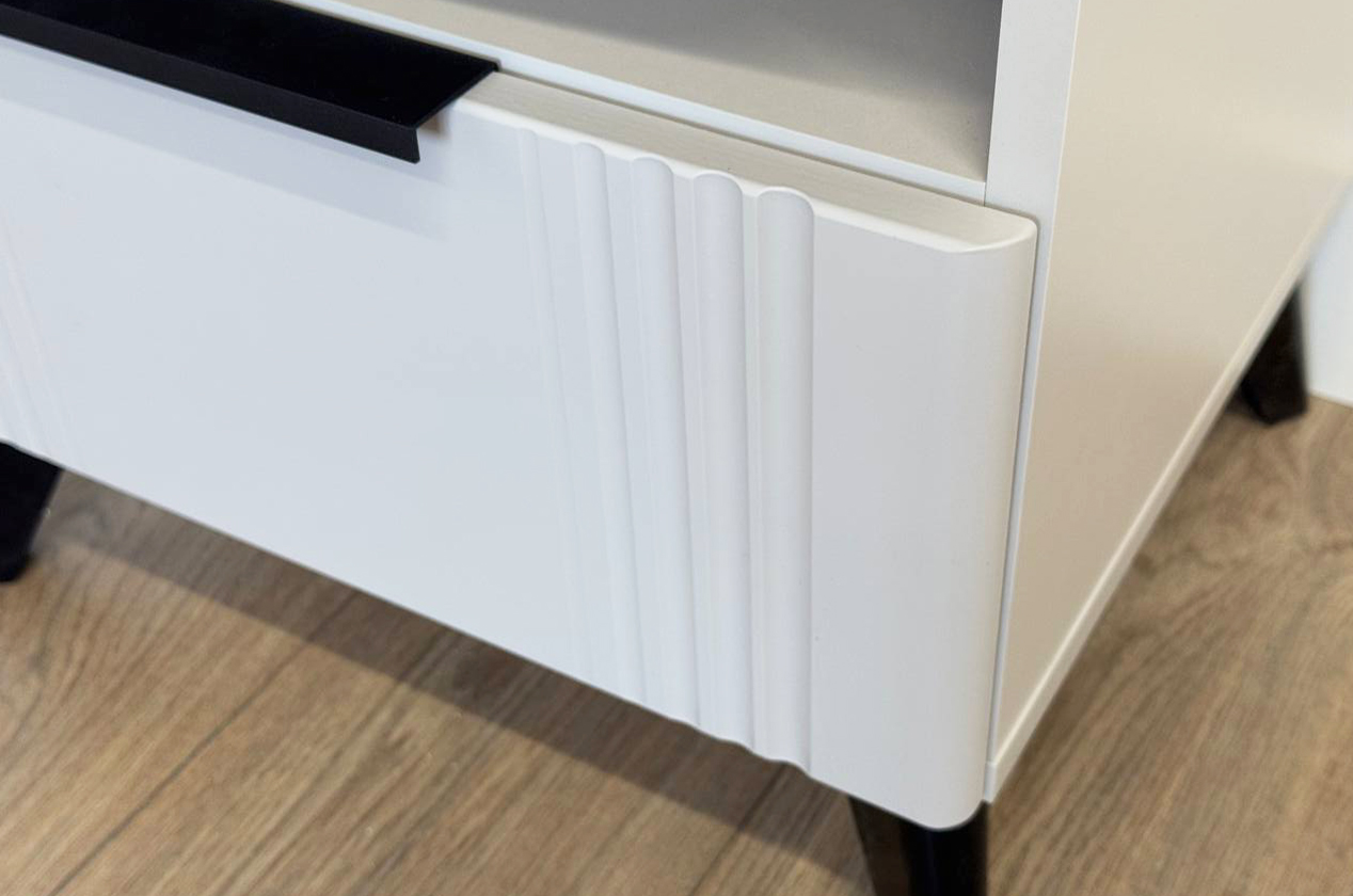 · Подойдет к любому интерьеру: Нежный бежевый цвет и элегантный контраст с черными ножками делают тумбу стильным акцентом в любом интерьере.