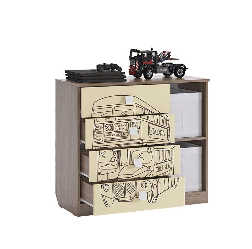 Стильный комод «Челси» – мечта каждого мальчика. В 4-х выдвижных ящиках и 2-х удобных закрытых нишах за одним фасадом можно разместить все вещи подростка. Эффектный принтерный рисунок на фасадах выдержан в общем стилистическом решении. Рисунок устойчив к истиранию и ультрафиолету. Детская «Челси»- все, что нужно для истинного джентльмена!
