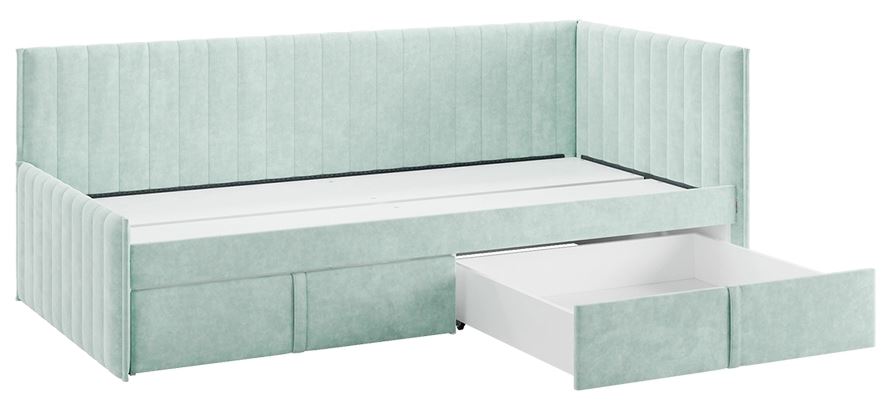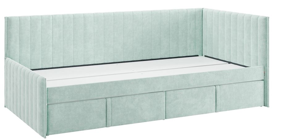 Кровать - тахта «Твикс» с ящиками размером 90x200 см в цвете «мята» (велюр) — это стильное и функциональное решение для спальни или детской комнаты
