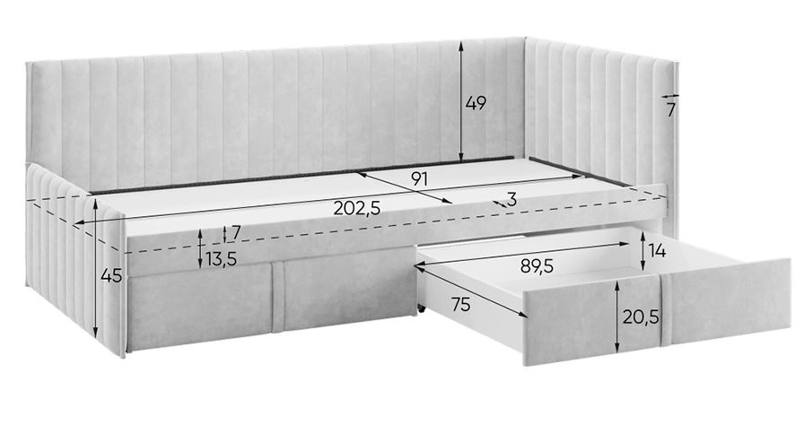 - Размер спального места: 90 x 200 см.