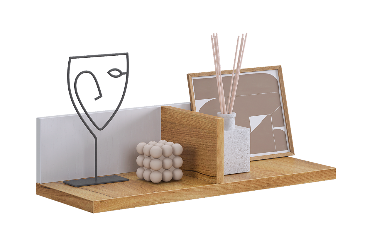 Открытая настенная полка для организации пространства и демонстрации любимых предметов.