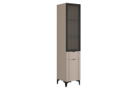 • Внутреннее наполнение: Полки за стеклянной и глухой дверцами, а также выкатной ящик для эффективного использования пространства.