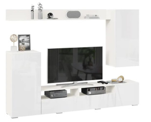 Поскольку в одной конструкции сочетаются разные по размеру, форме, открытые и закрытые фрагменты, гостиная не выглядит массивной и оптимально подходит для установки даже в небольшие помещения. Конструкции можно размещать как вдоль одной стены, так и в разных участках комнаты.
