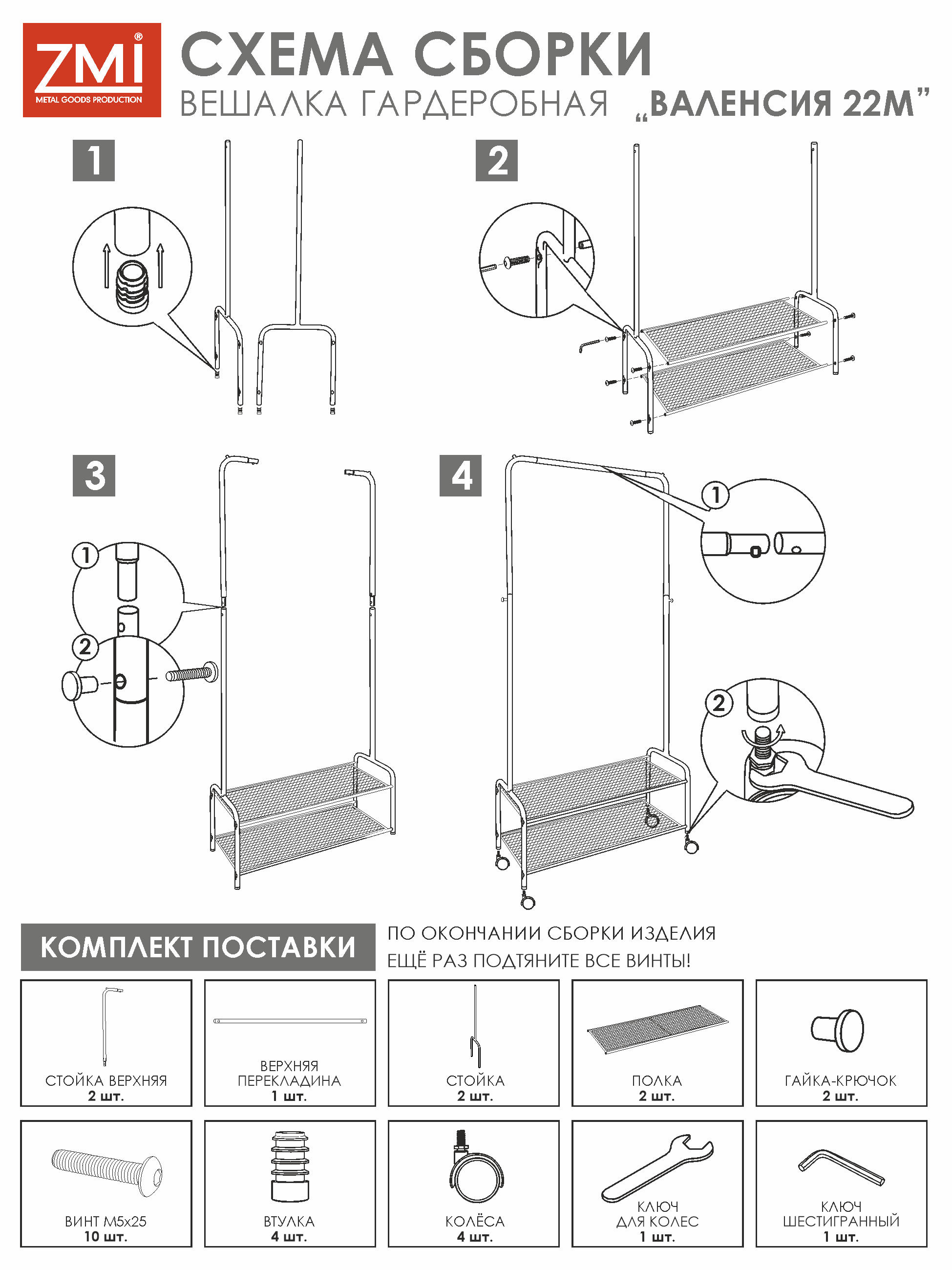 —Вешалка гардеробная "Валенсия 22М" с двумя полками на колесах Белый