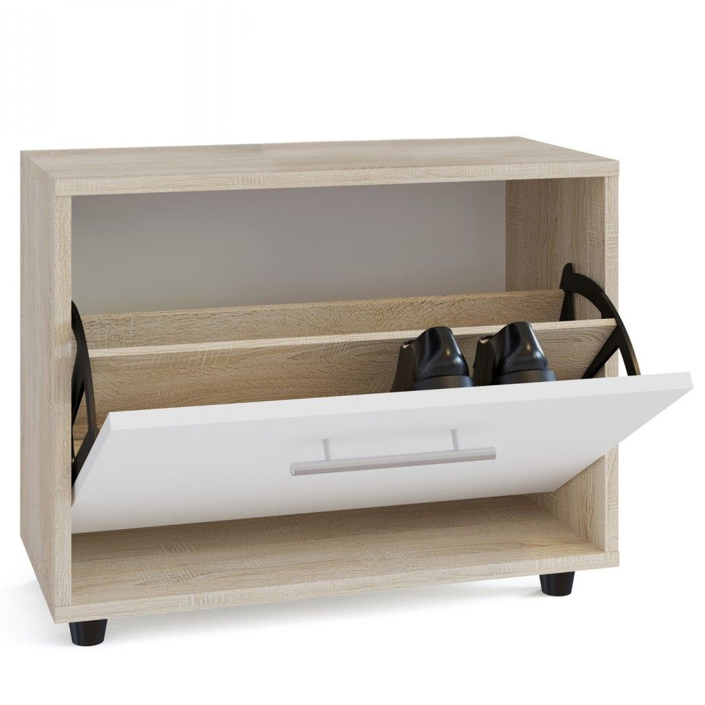 Плюс в том, что мебель оптимально подходит для хранения летней и зимней обуви, а за счет правильно подобранной высоты между ярусами, не составит сложности поставить сапоги с высоким голенищем. С легкостью можно найти нужную пару перед выходом, после прогулки снять обувь и поставить ее на место.