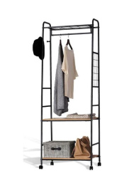 Вешалка гардеробная "Валенсия 22М" с двумя полками на колесах/Черный