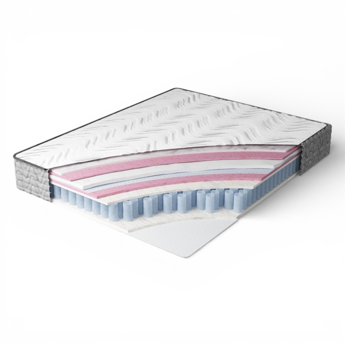 Нетканый материал выполняет защитную и укрепляющую функцию: он фиксирует внутренние слои, продлевает срок службы матраса и оберегает мягкие верхние материалы от износа.