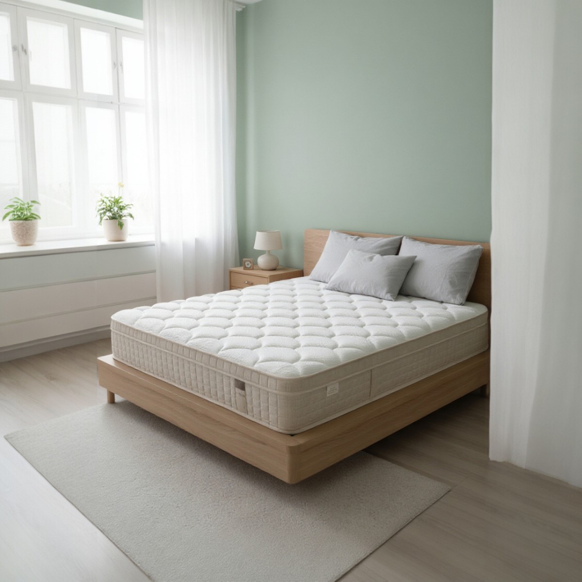 Натуральный хлопковый наполнитель: Окружает блок пружин, смягчая жесткость и улучшая циркуляцию воздуха.