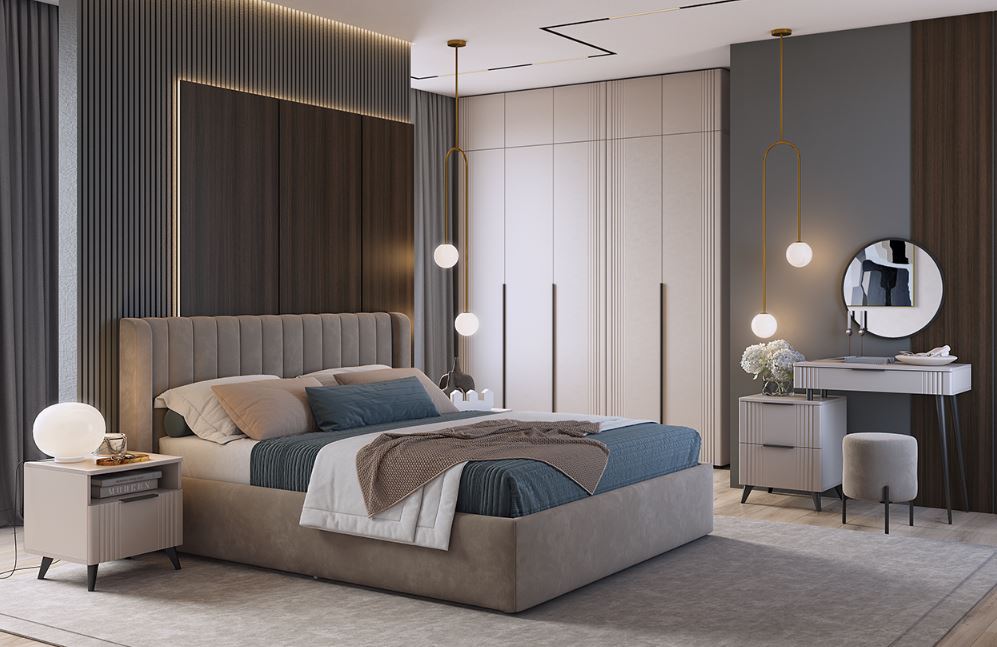 Дизайн: Элегантный фасад из МДФ с ПВХ-пленкой цвета «фрапучино» украшен вертикальными фрезерованными линиями. Корпус выполнен из ЛДСП цвета «капучино».