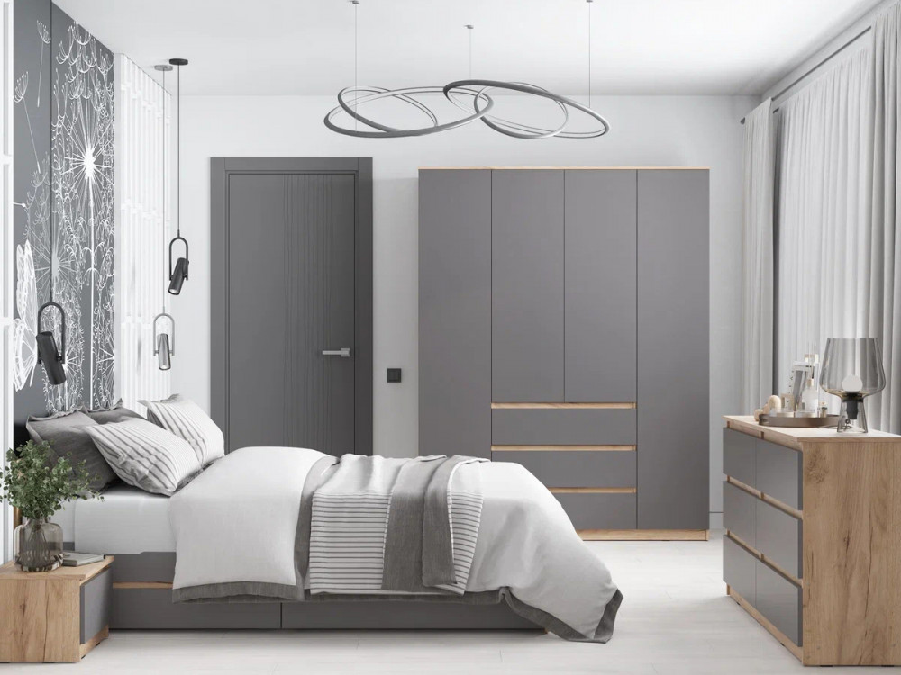 Сити Шкаф ШР-4 с ящиками Серый Графит/Дуб Крафт Золотой