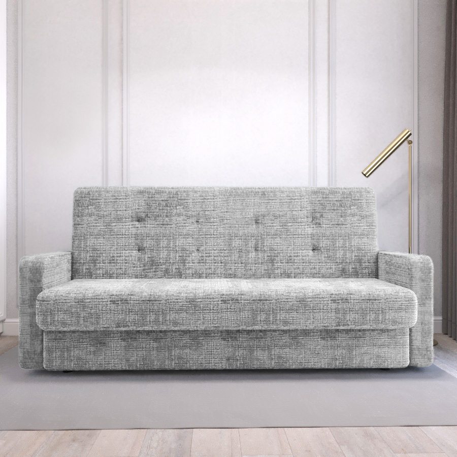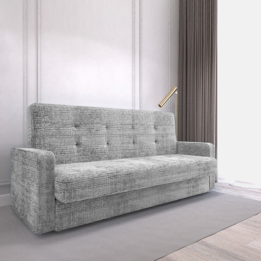 Прямой диван "Лидер 3" с подлокотниками - идеальное сочетание компактности и комфорта. Его простой силуэт и минималистичный дизайн позволяют легко вписать его в любой современный интерьер. Округлые подлокотники обеспечивают дополнительный уют и удобство во время отдыха. Благодаря надежному раскладному механизму диван легко трансформируется в просторное двуспальное место, что обеспечит качественный сон. Мягкая обивка дивана приятна на ощупь и легко очищается от загрязнений. Велюровый материал добавляет изысканности интерьеру комнаты и делает его более уютным. А наличие бельевого короба в основании позволит удобно хранить постельные принадлежности.