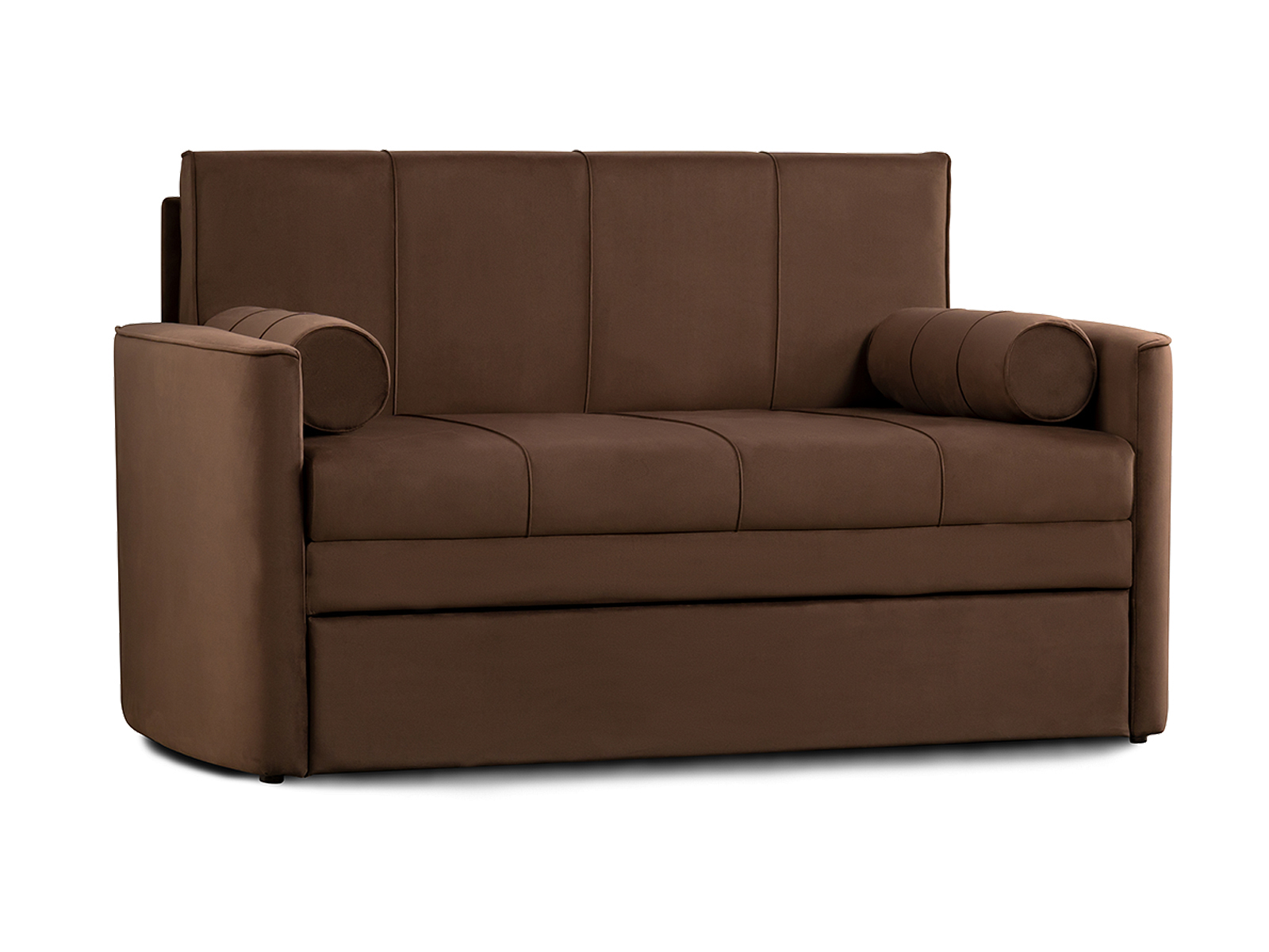 Диван-кровать Мелани Р (120) - компактный современный диванчик. Скругленные подлокотники с кантами подчеркивают эргономичность модели. Простой и надежный механизм трансформации на каждый день обеспечит удобным спальным местом ребенка или подростка. Может использоваться в качестве гостевого спального места для взрослого. Размер сп. места 195 х 120 см, есть небольшой бельевой ящик. Диван выполнен в мягком фактурном велюре. "Пальчиковый эффект" на ткани обивки выражен средне. Опоры - цвет черный, круглые, высота 25 мм., выполнены из высококачественного пластика. Прочность конструкции ножек обеспечена ребрами жесткости и внутренним креплением под фурнитуру.