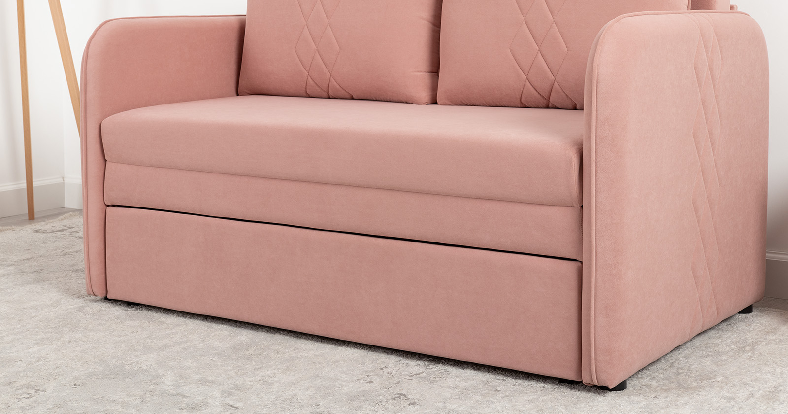 Стильный и практичный дизайн: Лаконичная форма и изящная декоративная отстрочка, подчеркивающая фактуру роскошного велюра, позволяют дивану гармонично вписаться как в детскую, так и в современную гостиную.