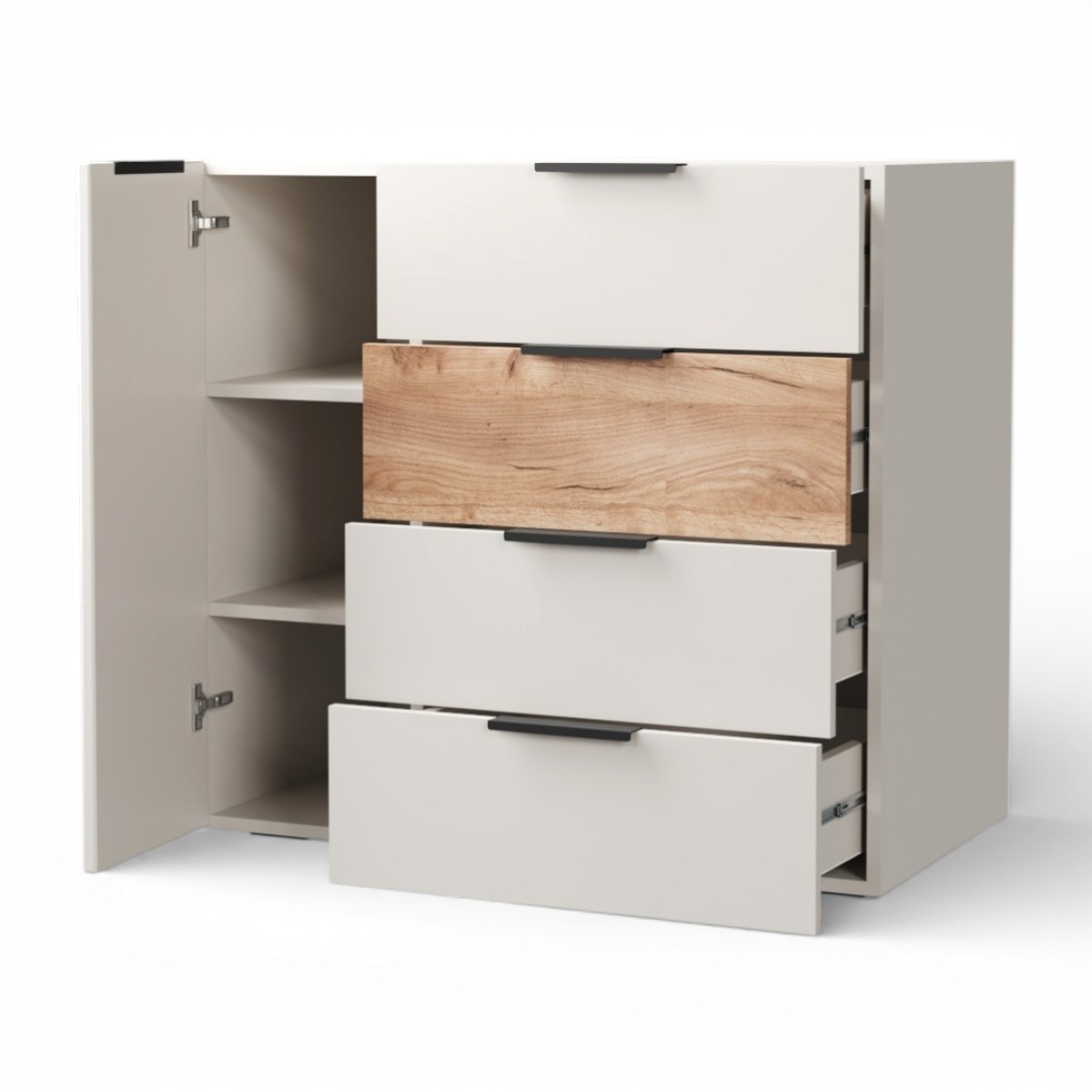 Комод Севиль 1дв.4ящ./ Кашемир/Дуб крафт
